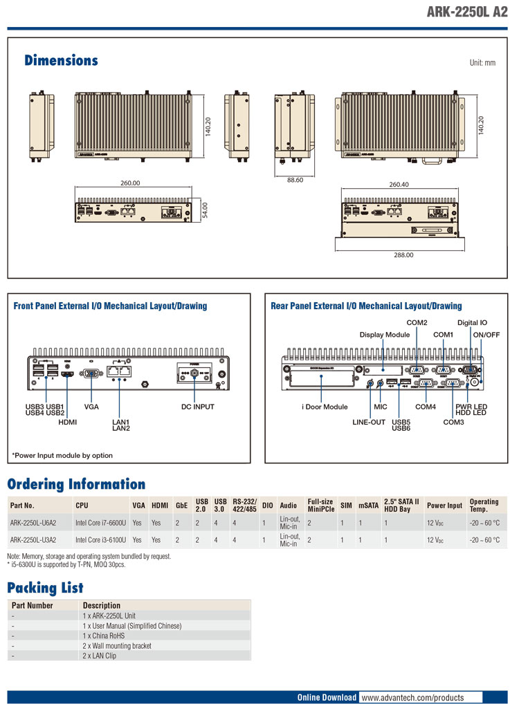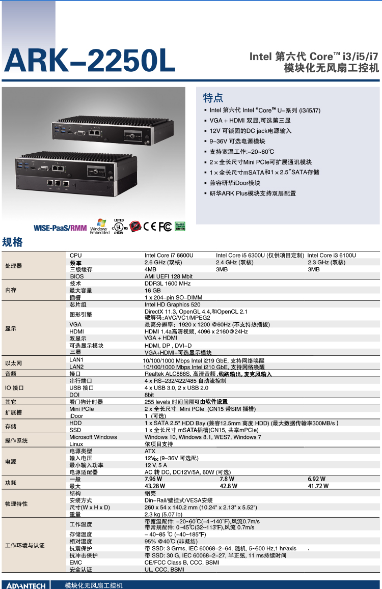 ARK-2250L嵌入式无风扇视觉检测主机超薄宽温多显示口